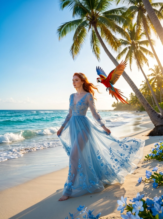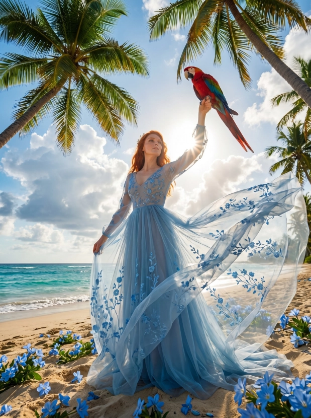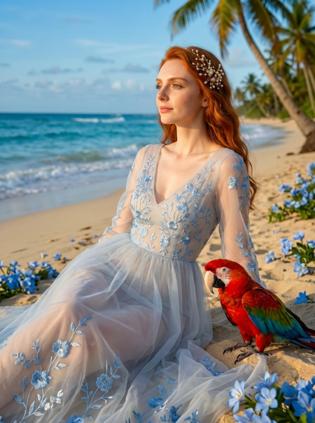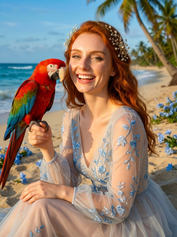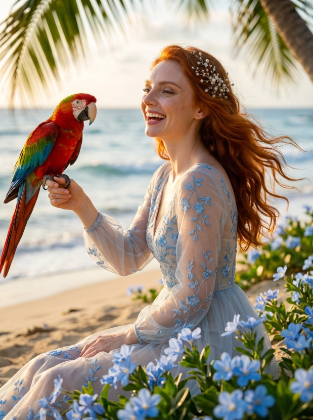 Фотосессия с попугаем у океана: яркий тропический портрет