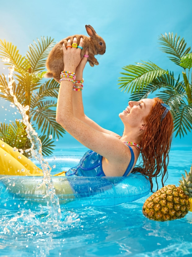 Фотосессия у бассейна в стиле поп арт яркий летний образ