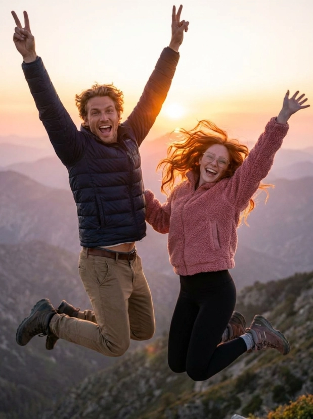 Погрузитесь в атмосферу магии заката с нашей фотосессией в потрясающих горах. Представьте себе, как вы и ваш партнер улыбаетесь на фоне величественного пейзажа, держа солнечный свет в руках. Такую незабываемую картину можно создать с помощью нашего сервиса. Будь то для личного бренда, для ваших социальных сетей или просто для коллекции красивых изображений — наши фоторешения помогут вам выделиться.