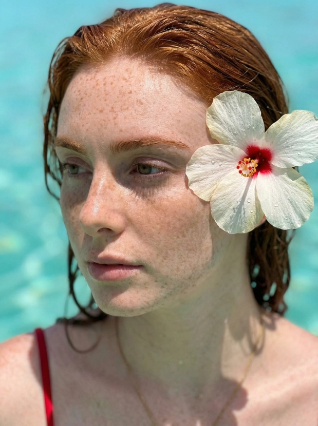 Фотосессия в воде с цветком гибискуса