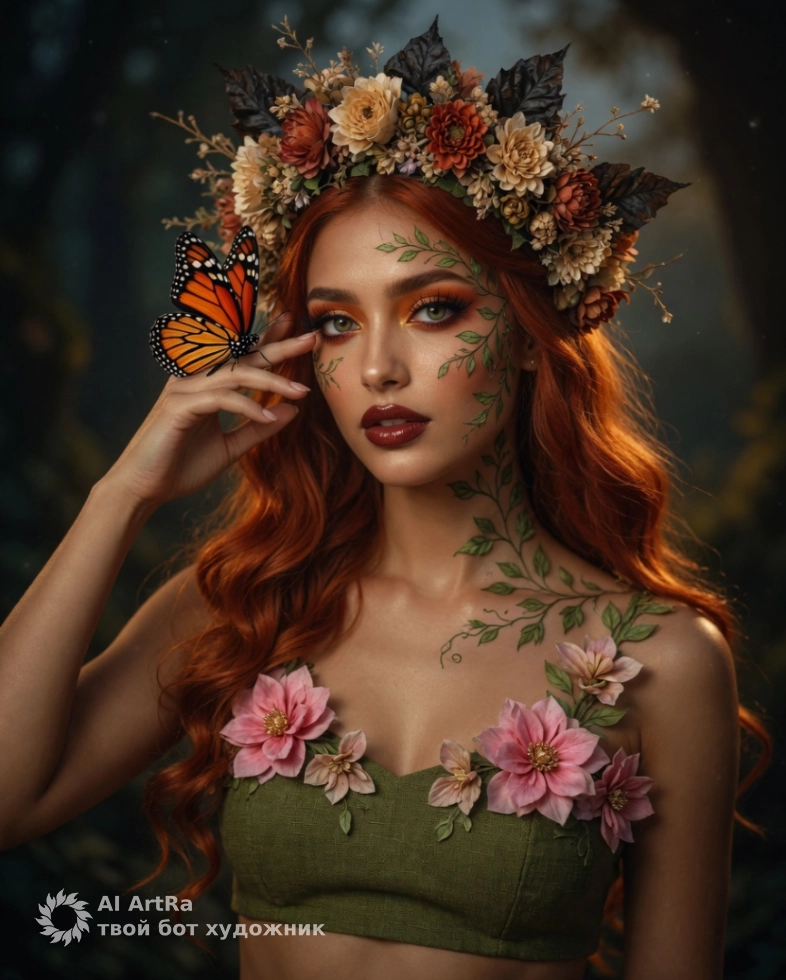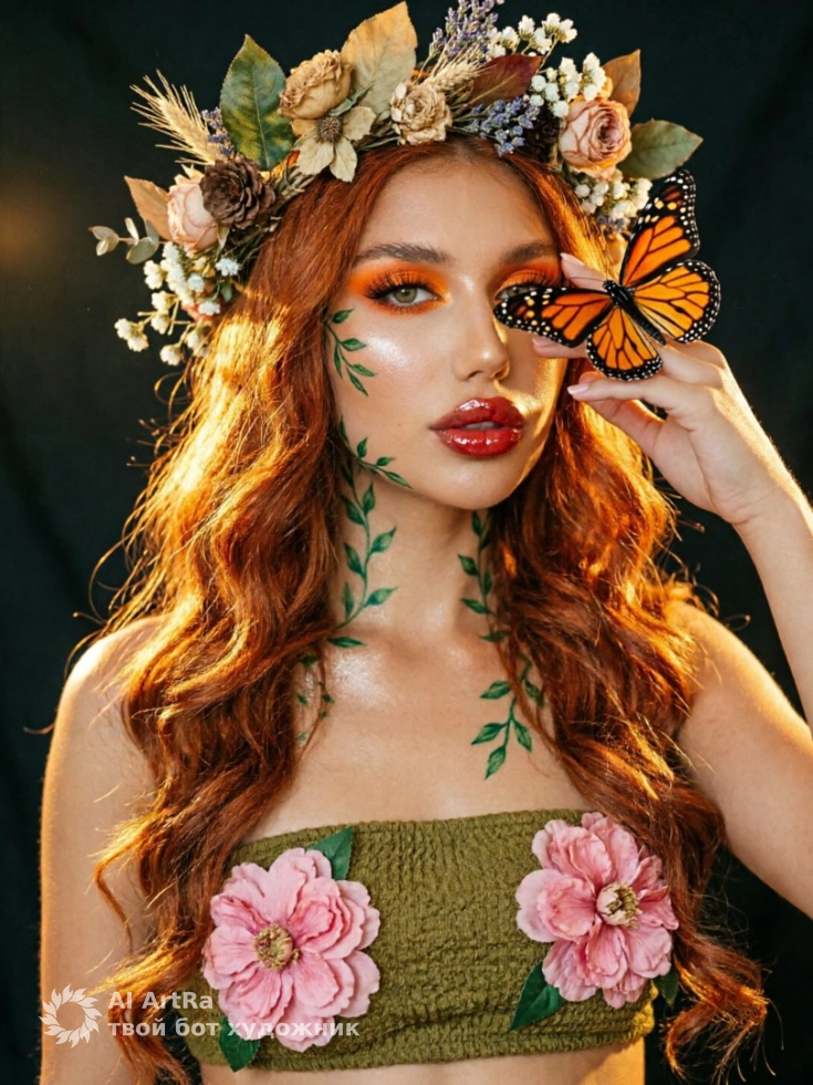 Каждый мечтает о неповторимых и волшебных изображениях, которые запомнятся и привлекут внимание. Наша мистическая фотосессия с бабочкой — это именно то, что вам нужно для создания уникального контента, который выделит вас среди других. Изображение молодой женщины с великолепным венком из цветов и бабочкой на руке — это больше, чем просто картинка. Это возможность показать ваше истинное «я», создать атмосферу и подчеркнуть уникальность вашего стиля.