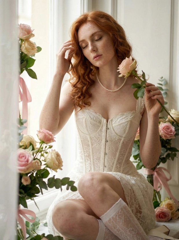 Нежность у окна с розами, романтика в винтажном стиле