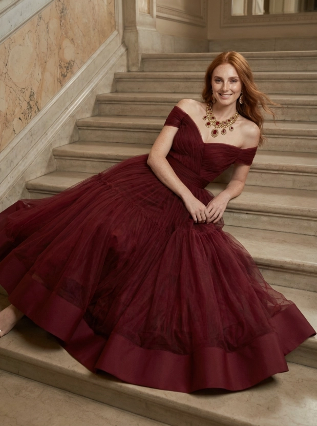 Роскошная фэшн-фотосессия в вечернем платье на лестнице