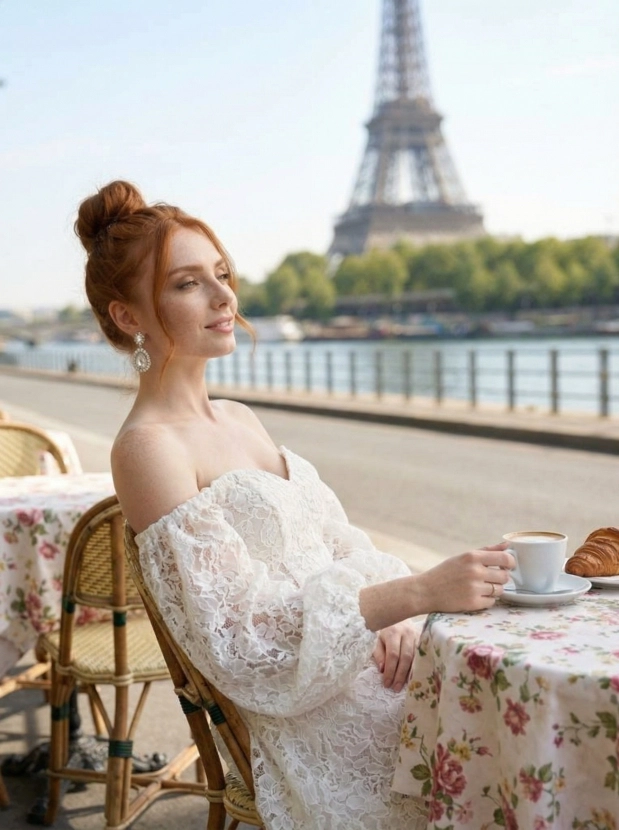 Не упустите шанс создать невероятно красивый образ, наполненный атмосферой утреннего Парижа, который расскажет вашу историю в каждом кадре.